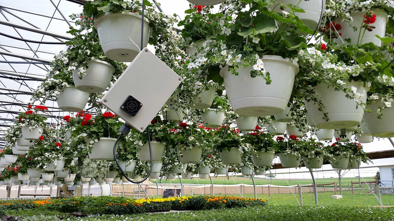 Aspirated Greenhouse Humidity Sensor – Enables relative humidity control by implementing the ventilation, heating and cooling assets within the greenhouse. This sensor is for use with our environmental controllers.